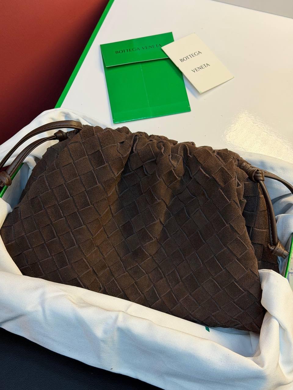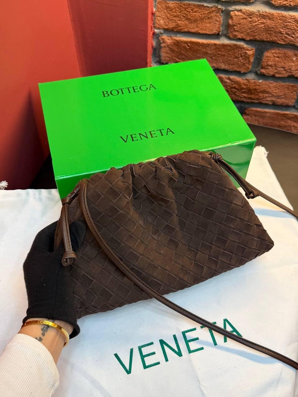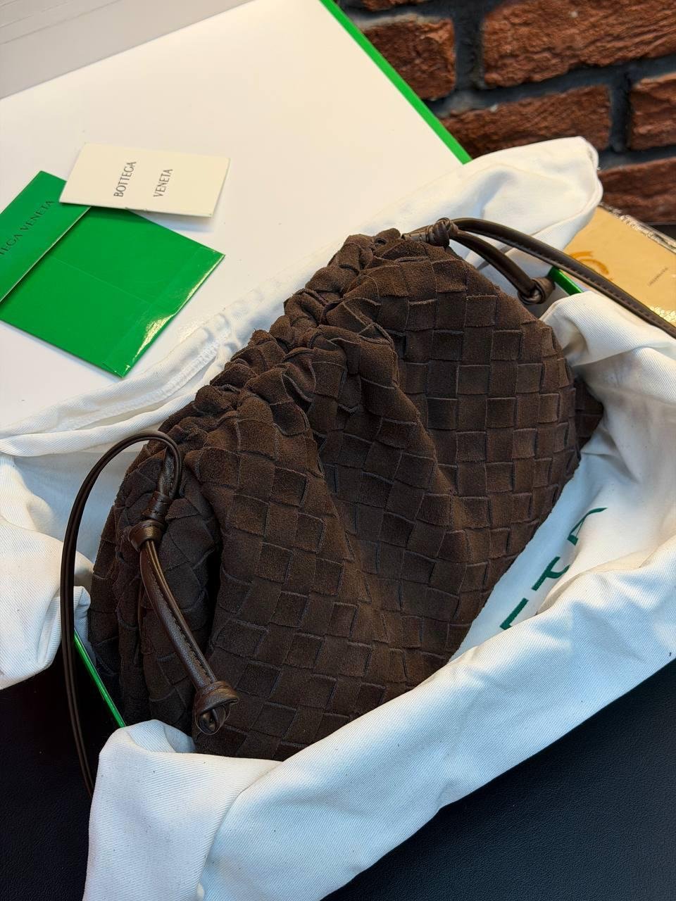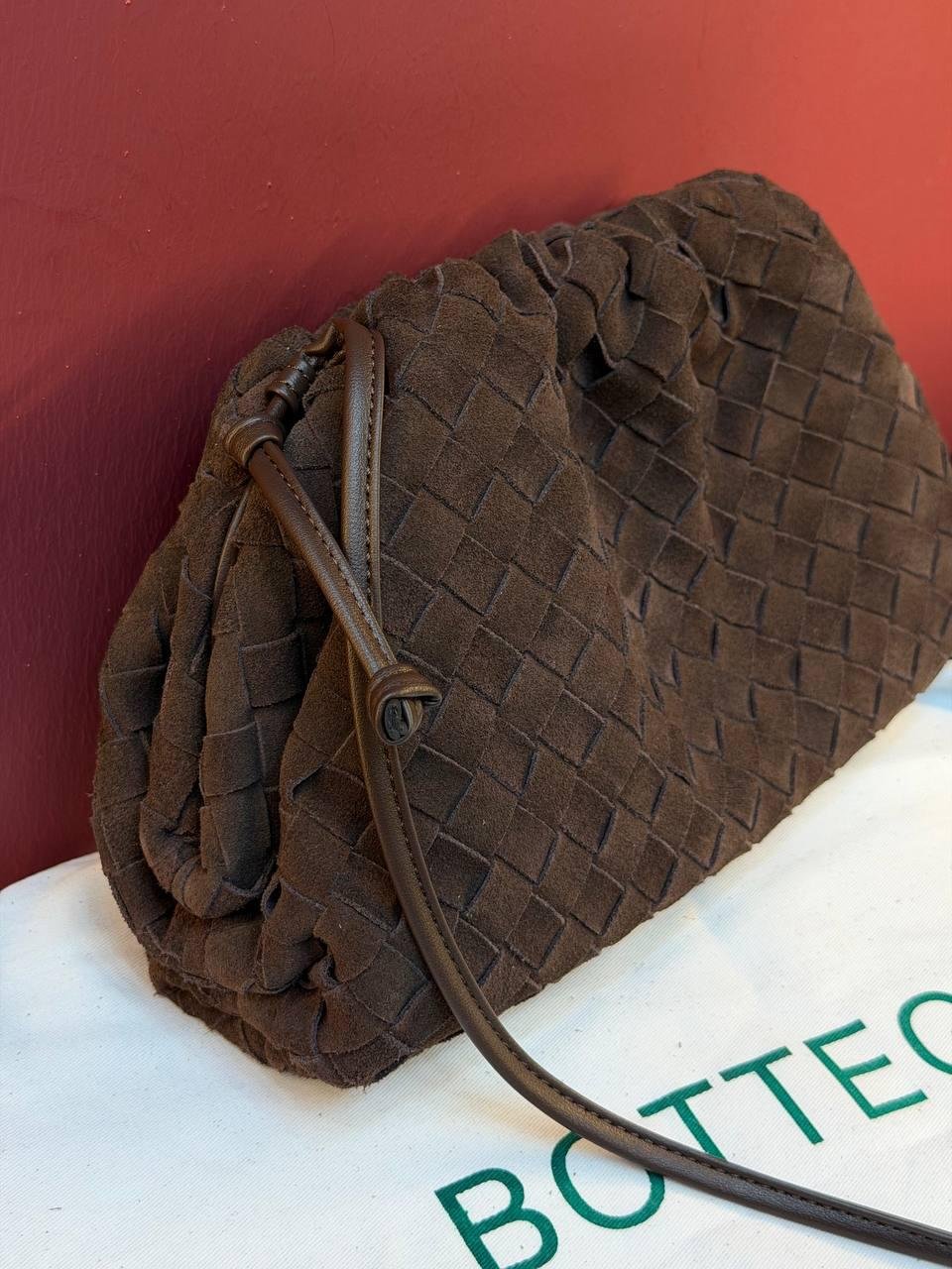 Bottega Veneta Suede Woven Shoulder Bag “Dark Brown”
