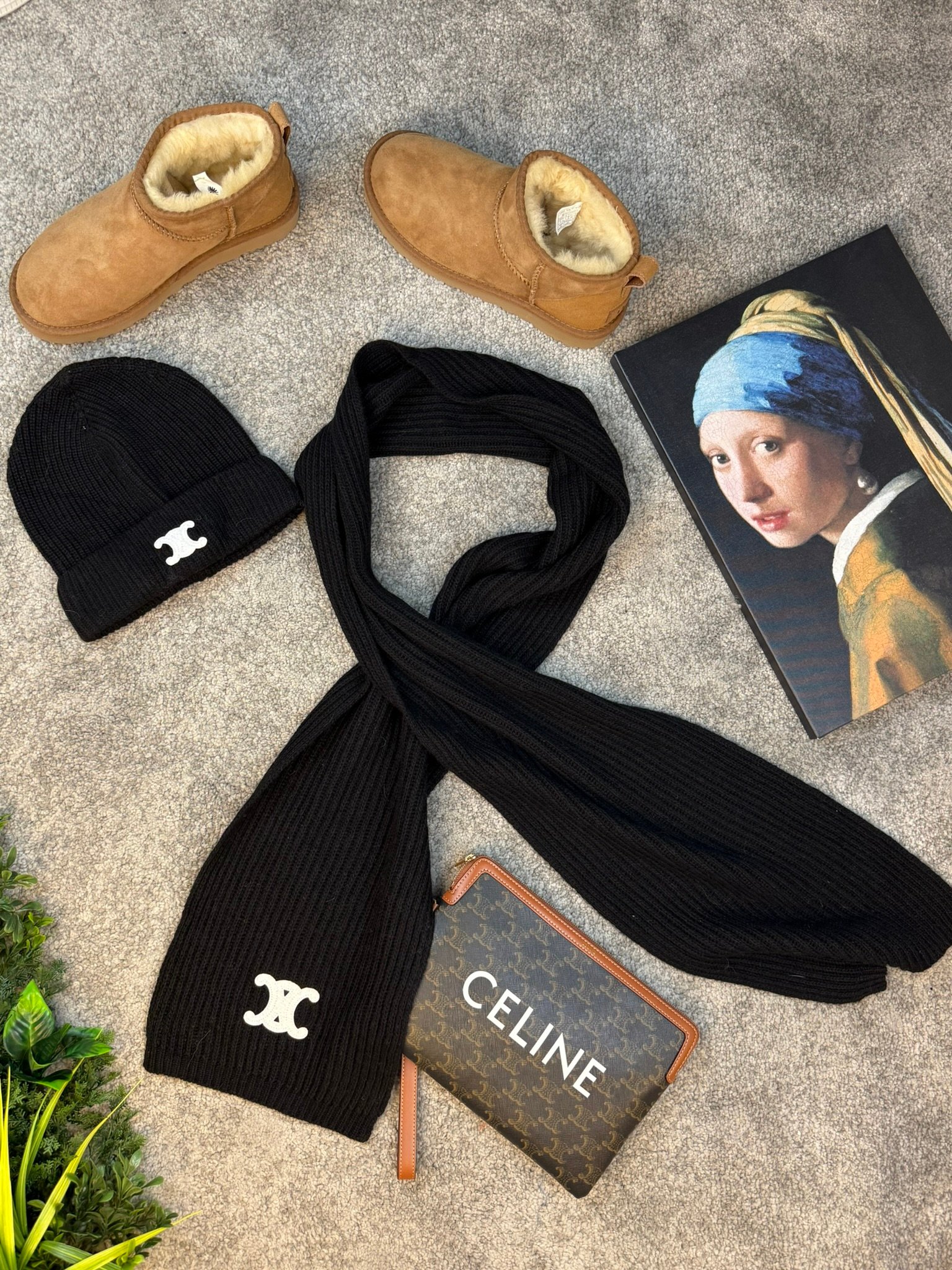 Celine komplet Šal i Kapa Black